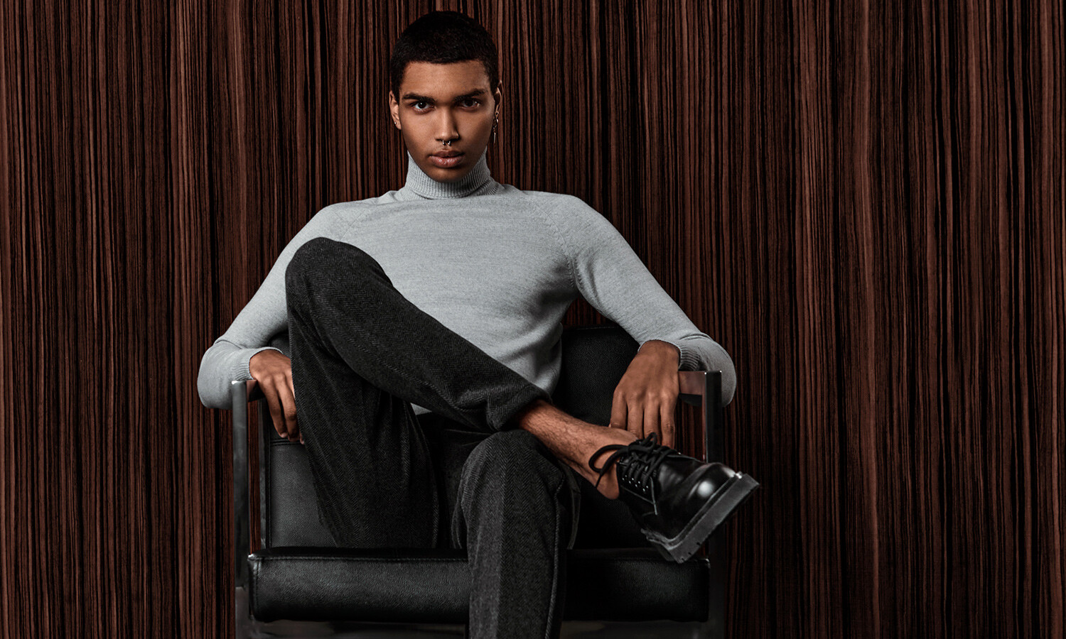 На фото ми поєднали чоловічий вовняний светр та стримані джинси і доповнити їх базовими чоловічими туфлями. Такий образ стане ідеальним для теплої осені, а якщо додати до нього класичне пальто — добре підійде й для європейської зими. В’язаний сірий светр чудово зігріє та подарує вам затишок та комфорт.